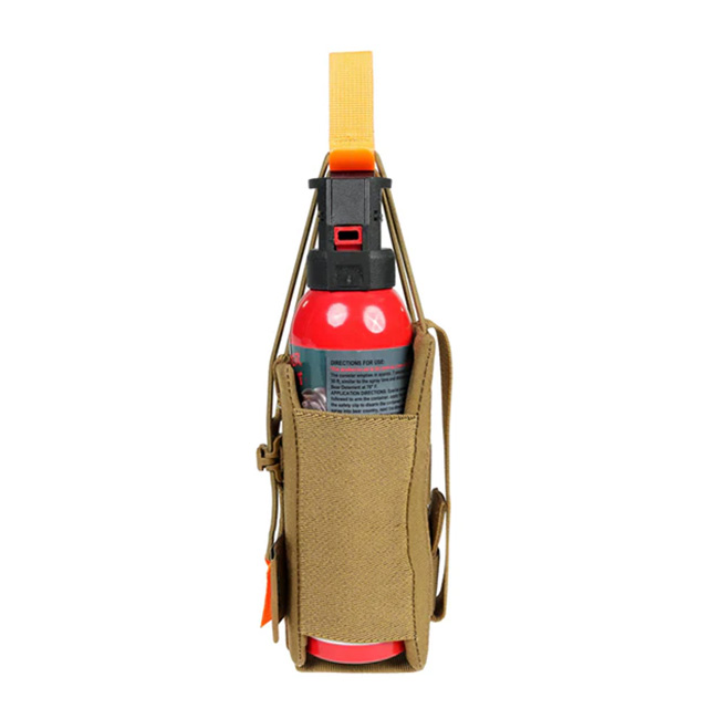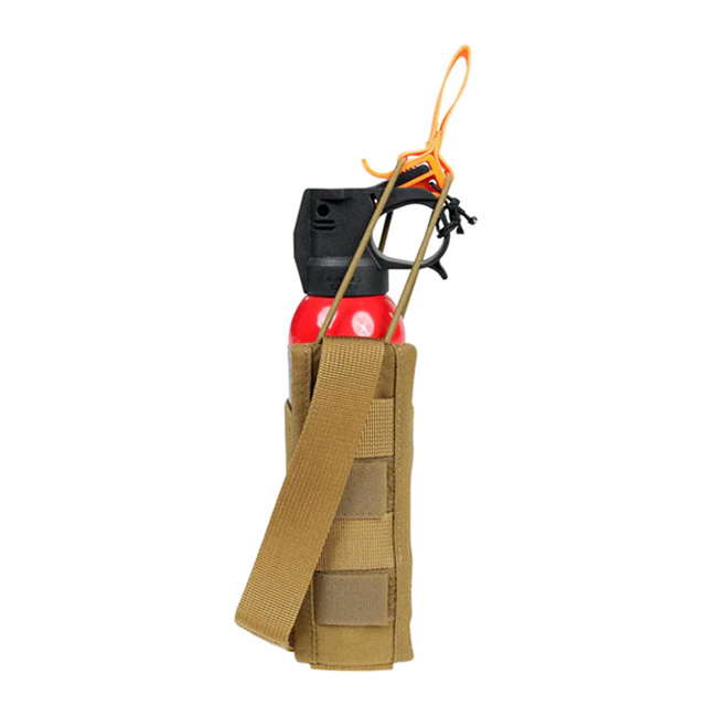 ショルダーパッドに取り付けたり、手持ちでも使えるこのアクセサリーは、ほとんどの防犯スプレーや熊避けスプレーがしっかり収まるサイズになっています。