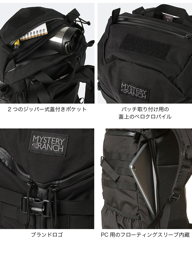 MYSTERYRANCH ミステリーランチ 2デイアサルトはミステリーランチの代表モデルであるスリーデイアサルトをスケールダウンし、ミリタリーの最前線では無く日常の使い勝手の良さにフォーカスしたバックパックです。MOLLEシステムなどミリタリー由来のディティールも残しつつ、内部にはPC/ドキュメントスリーブが採用されサイドジッパーから素早い出し入れが可能です。