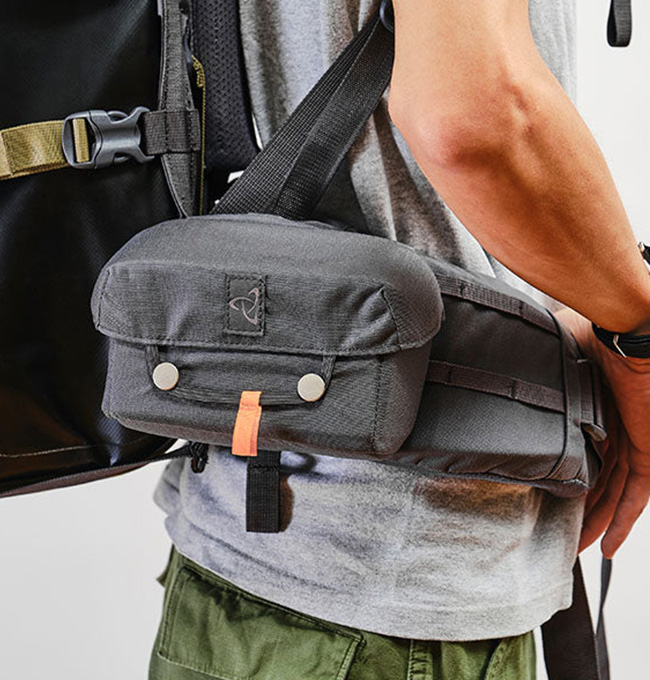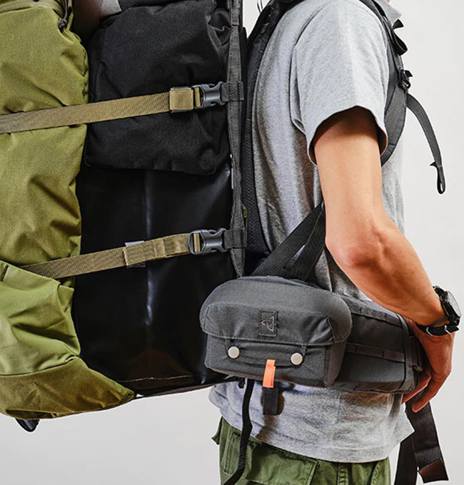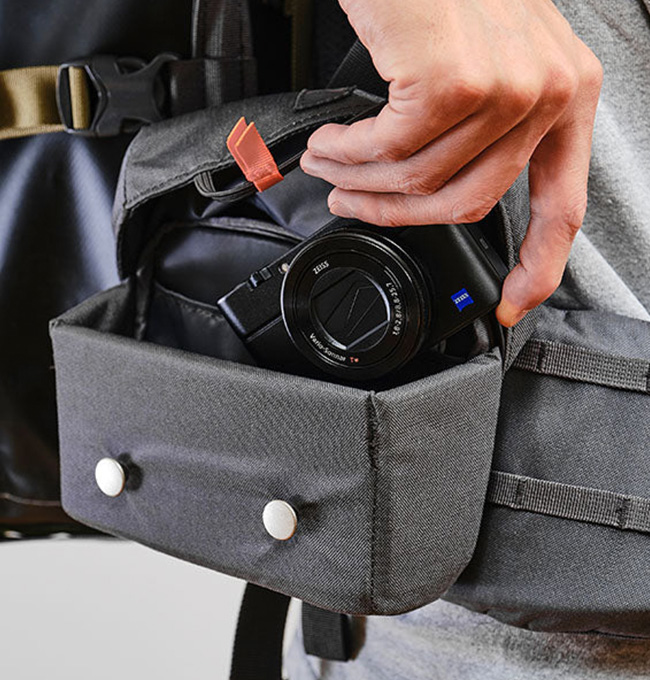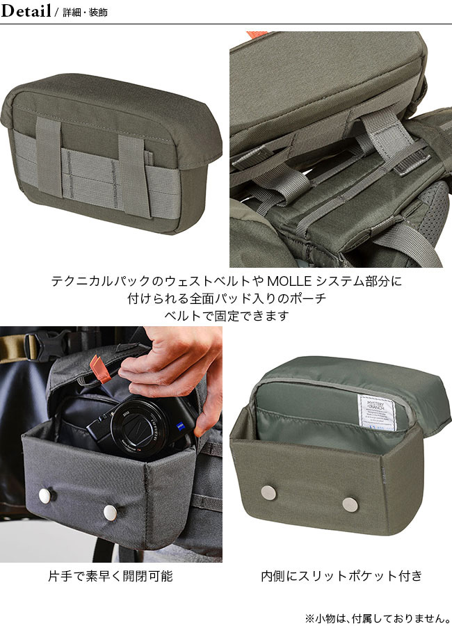 硬質パッドにより中身が守られ、かつ型崩れしにくいためコンパクトデジカメやモノキュラー、スマートフォン、行動食などの収納に便利です。