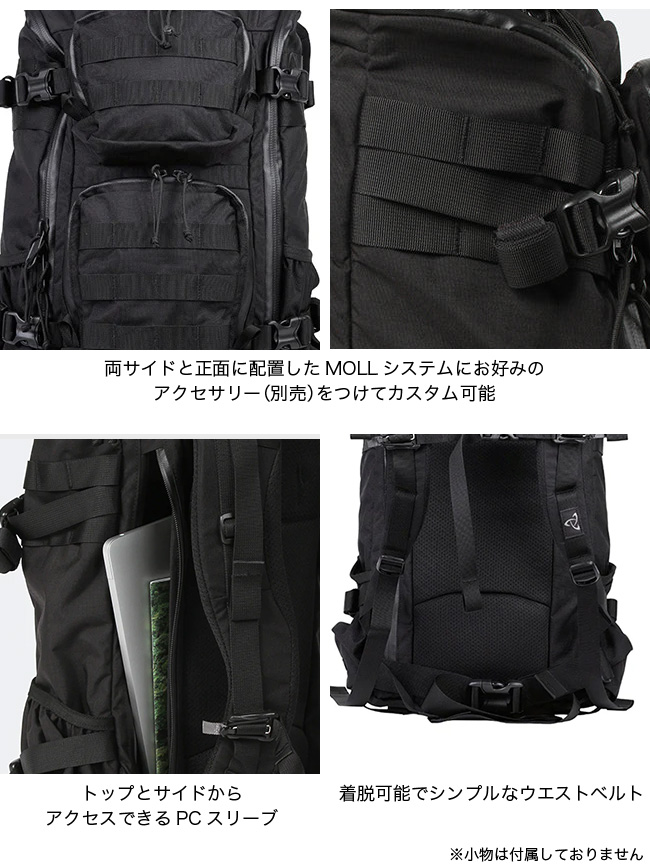 ・:3つのメインポケット(1つはキークリップ付き)とMOLLシステムで収納力アップ
