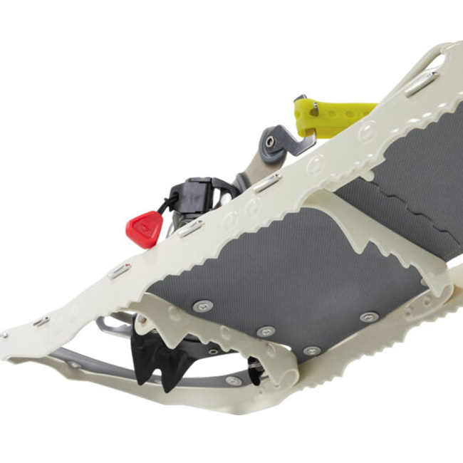 丈夫でしなやかなデッキが地形に追従し、急斜面の登りやスノーシューが苦手とするトラバース時にもしっかりと地面を捉えます。