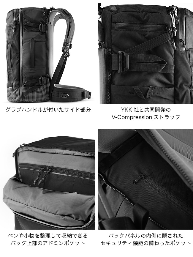 トラベルパックの構造と、テクニカルパックの素材と構造を組み合わせています。