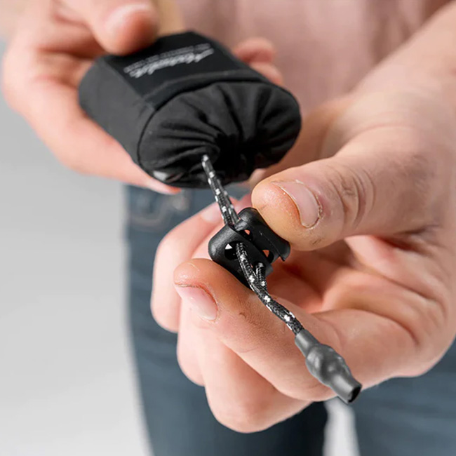 ・巾着型のハングループ付き収納袋|収納袋のループにカラビナなどを装着すればバッグなどに吊り下げて携帯ができます。