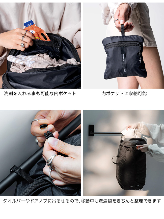 吊るしたり、ジッパーを閉めたり、平らに置いたり、どこにいても洗濯物を整理整頓してくれます。