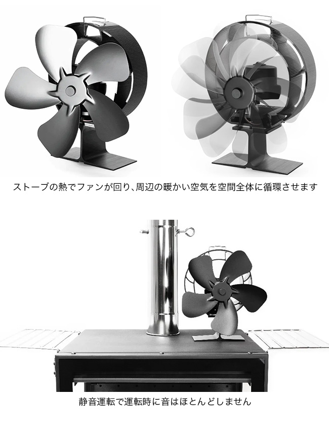 ストーブ上の熱を効率よく循環させ、テント内や室内をムラなく暖めます。