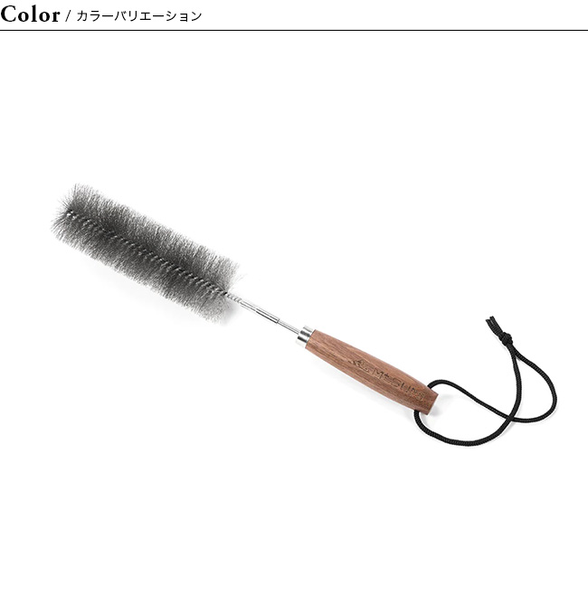 サイズはMt.SUMIの薪ストーブ煙突の径に合わせた直径58mmと直径80mmの2サイズで、共に持ち手は統一なので煙突径に合わせてブラシの変更も可能。