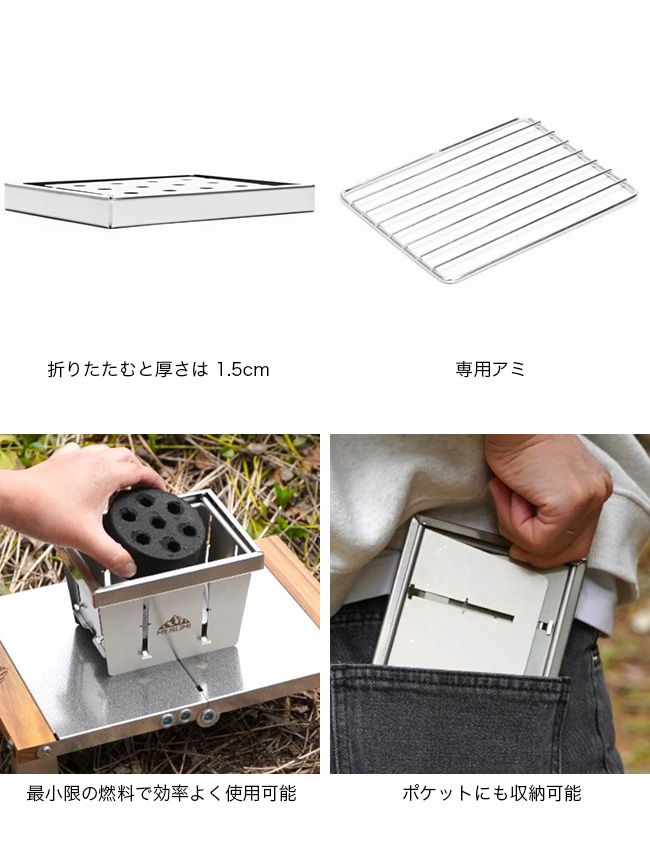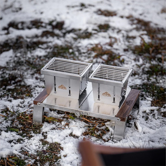 また円型の成形炭が一つ入る設計で、最小限の燃料で効率よく調理ができるため、荷物を減らしてキャンプを楽しみたい方にもおすすめ。