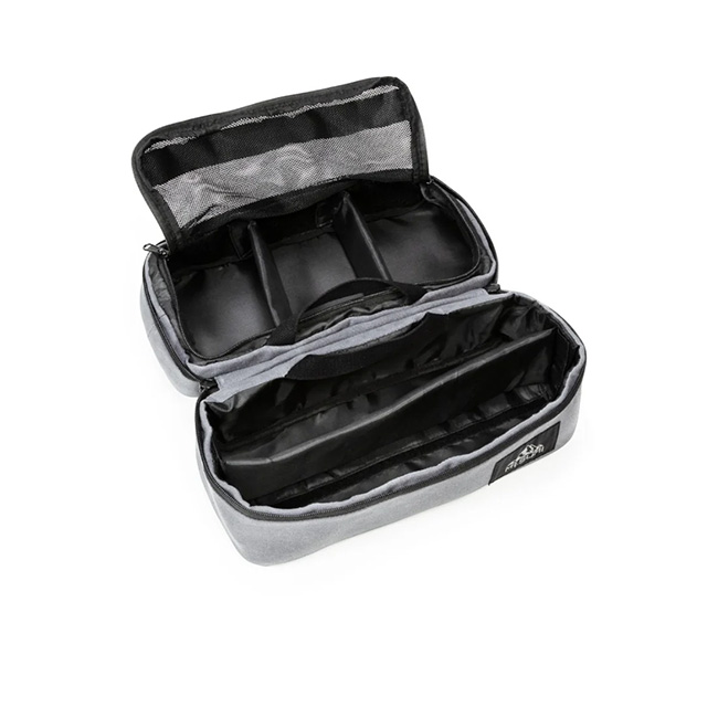 機能性を備えた収納構造です。仕切りは面ファスナーで固定する仕様となっており、収納物に合わせたレイアウト調整が可能です。