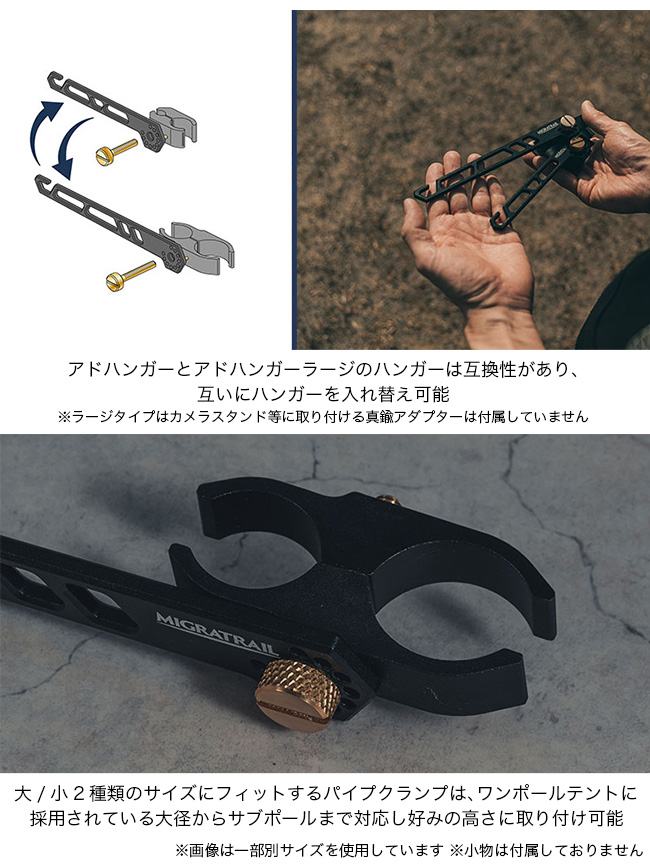 ミグラトレイル アドハンガー ラージ MIGRATRAIL ポールアクセサリーハンガーフック ランタン 三脚 ライト ハンギング フック キャンプ アウトドア