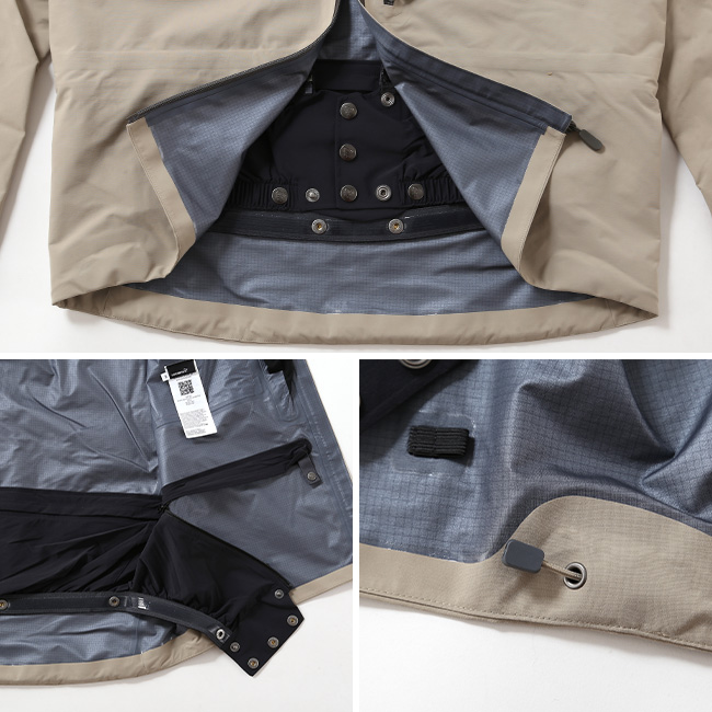 従来から続く防水性、防風性、透湿性に加え、メンブレンの変更によって軽く柔らかくなった恩恵を受け、表地に使われた100%リサイクルナイロンのデニールは70D×70Dから70D×160Dへと変更。