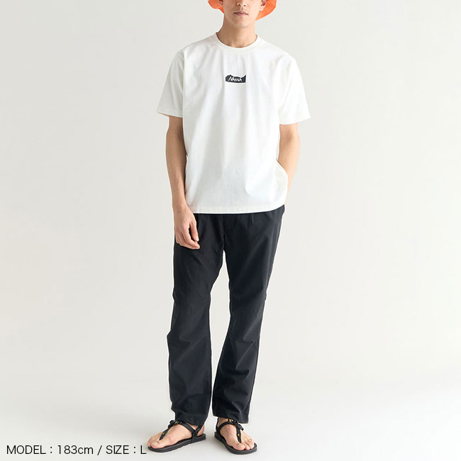 ナンガのTシャツの中でも人気を誇る「ECO HYBRID MT LOGO TEE」。ブランドロゴに山をあしらったグラフィックが、シンプルな中にもナンガらしい個性を添える1枚です。