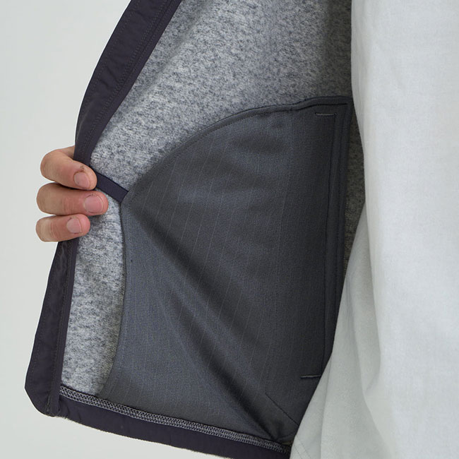 外見は、毛羽立ちもなくすっきりとした見た目に、内側はフリースらしく起毛した柔らかな肌触りになっています。