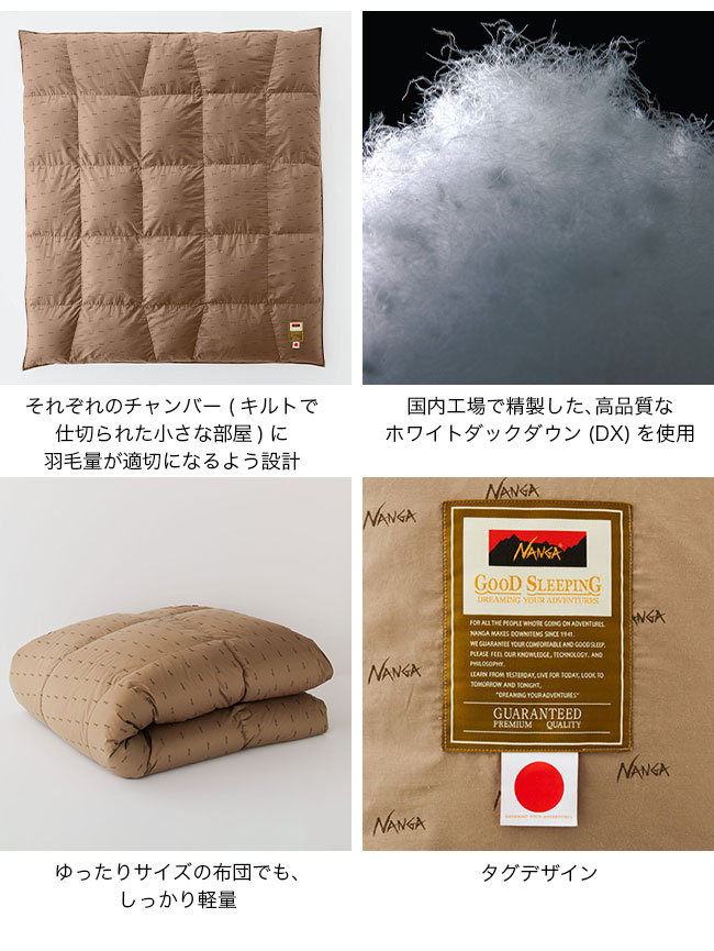 アウトドアという過酷な環境下で培った独自のノウハウを駆使したナンガの羽毛布団は、快適な眠りを提供します。