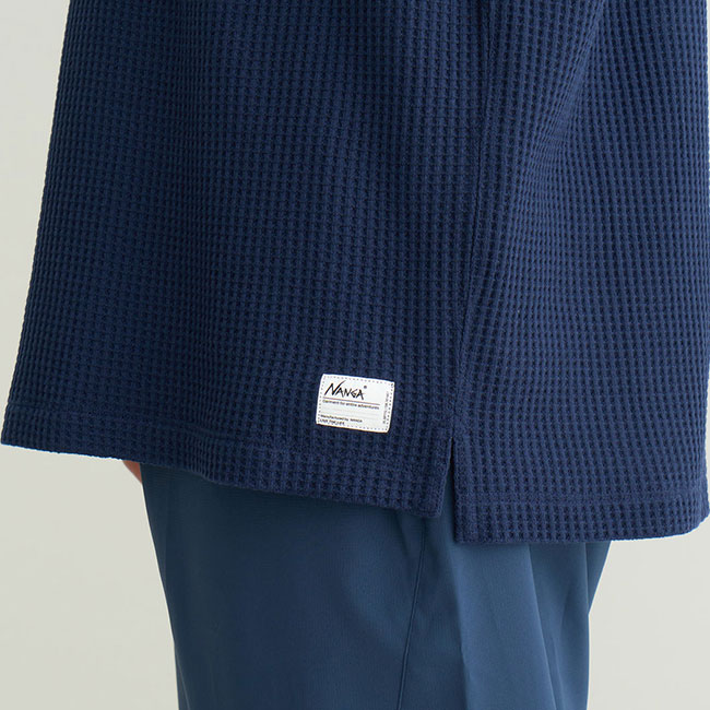優れた通気性を持っているオリジナルの度詰めワッフル生地を使用したナンガ定番のルーズフィットTシャツ。サイズ感はルーズフィットになっており、存在感がしっかりあり、1枚でもサマになる1着。