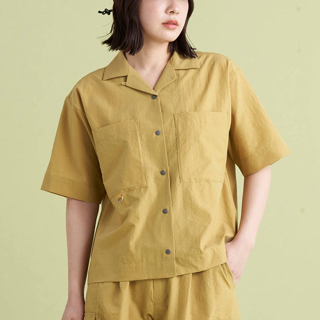 開襟シャツになっていることで、顔周りがスッキリし爽やかな印象に。