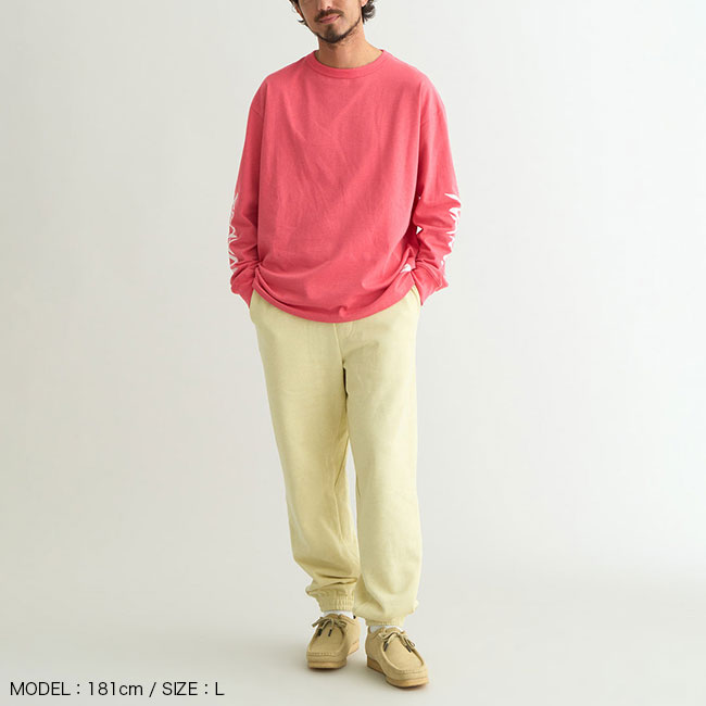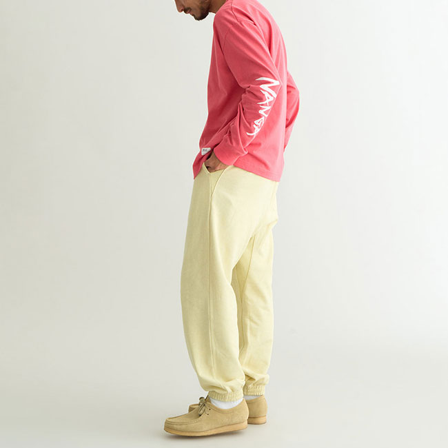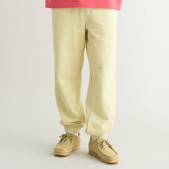 シンプルでありながらも、程よいゆとりを持たせたスウェットパンツ。フロントにタックを入れることでウエストから腰回りにかけてゆとり持たせています。