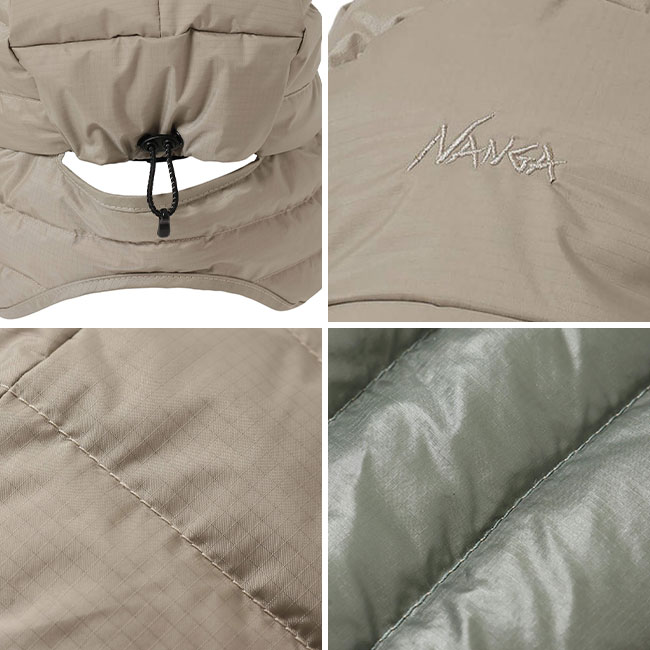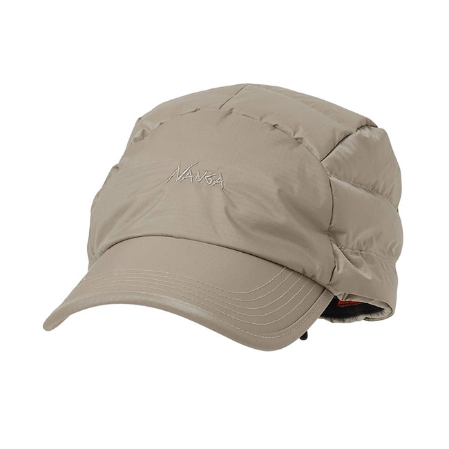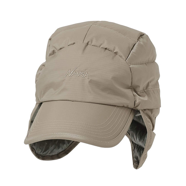 ナンガ定番のオーロラテックスを使ったダウンキャップ。取り外し可能なイヤーフラップを設けた2way仕様。