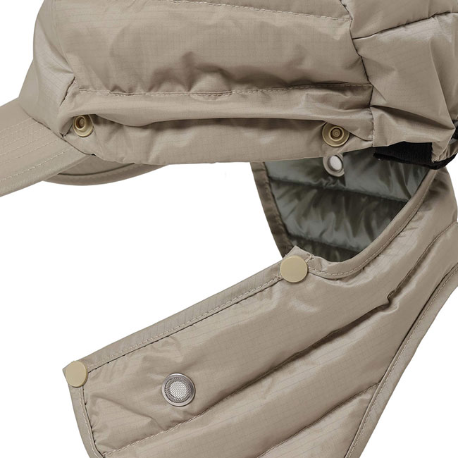 真冬にも対応したダウンキャップは、寒さを感じやすい耳元をしっかりカバーしてくれます。