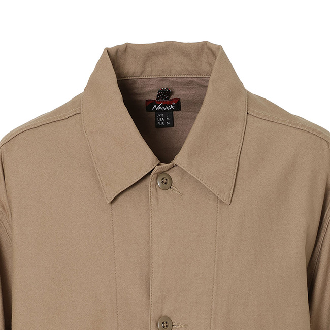 無骨な印象の中に上品さが漂う、バックサテン生地のカバーオール。ミリタリーやワークウェアで愛されてきた素材をベースに、ナンガらしい現代的なシルエットと実用性を加えました。