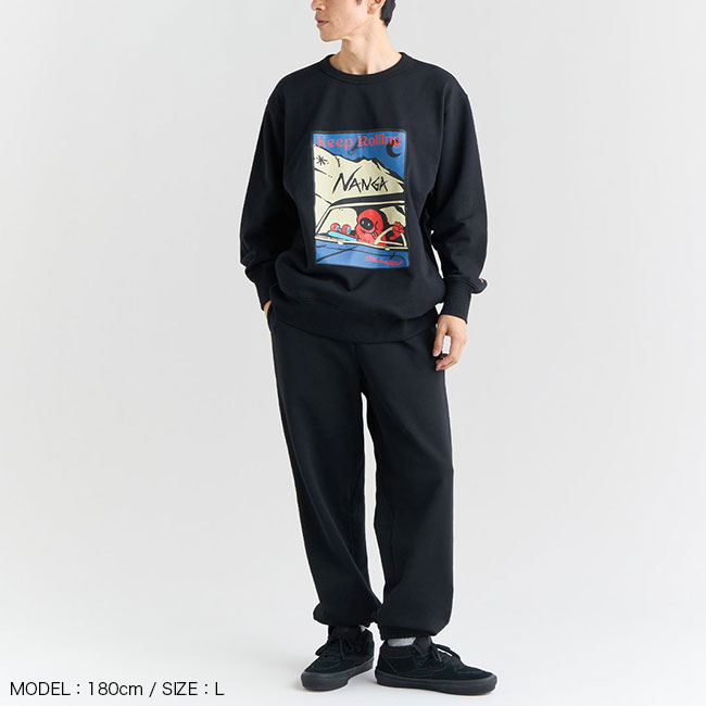 柔らかく軽い着心地が魅力のナンガのスウェットシリーズで、毎日気兼ねなく着られるデイリーウェアとして仕立てています。