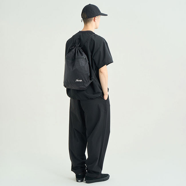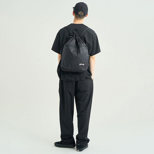 日常からアウトドアまでシームレスに活躍する、次世代ナップサック。超軽量64g/²でありながら、ヨットのセールにも使用される高強度素材「Fibermax64」を採用。