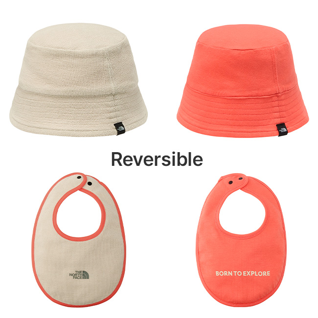 スタイは着脱しやすいドットボタン仕様で、表面にはロゴプリント、裏面にはTHE NORTH FACE BABYのタグラインである「BORN TO EXPLORE」のメッセージをプリント。