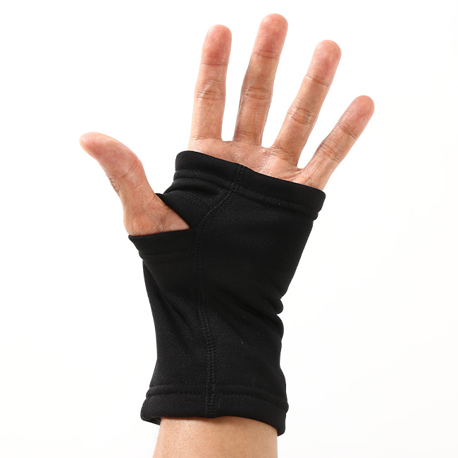 親指のホールのみを設けたシンプルなデザインの保温に役立つハンドウォーマー