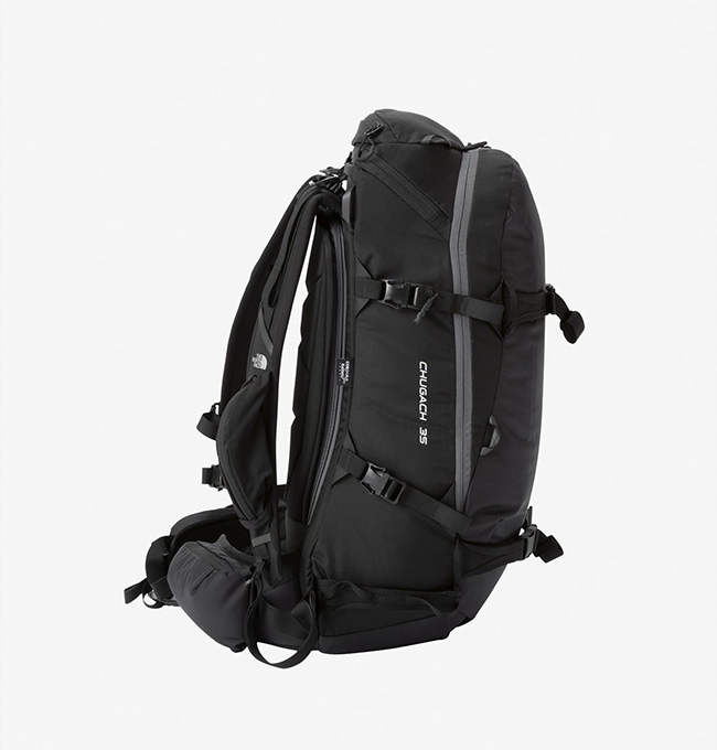 Chugach 35は、日帰りでのハイクアップに適した容量で、ライディング時の動きに追従しやすいブレ感が少ないパネルローディングを採用。素材には、軽量で耐久性に優れる330デニールストライプドビーナイロンをメインファブリックに使用。