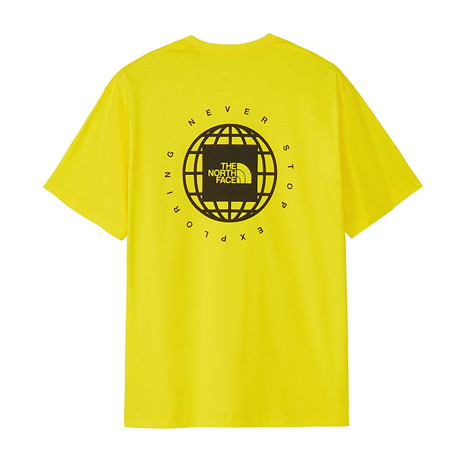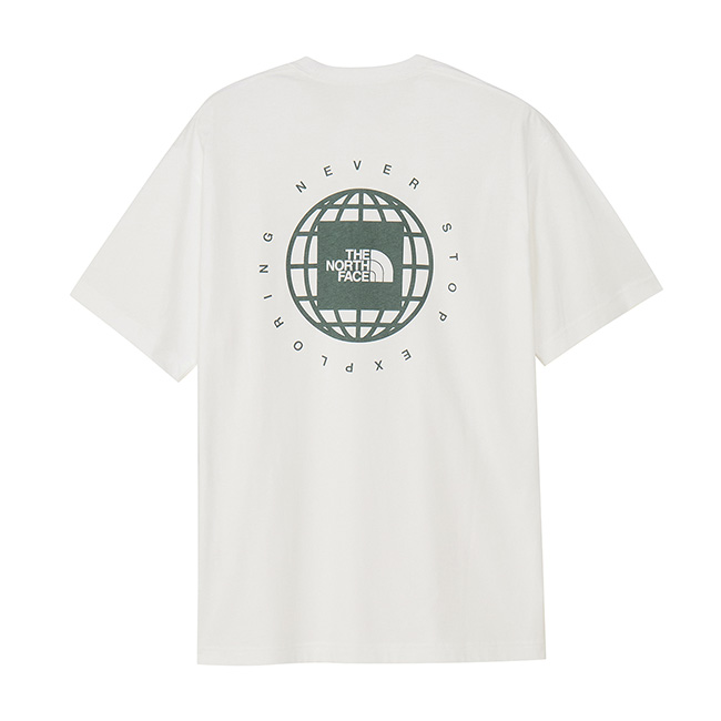 地球儀とスクエアロゴを組み合わせた“ジオスクエアロゴ”を背面に大きくプリントした、存在感のある半袖Tシャツ