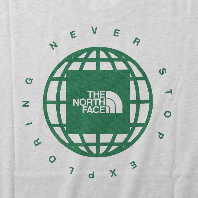 シンプルながらも印象的なデザインで、ライフスタイルからアウトドアまで幅広く活躍する一枚です。背面には、地球をモチーフにしたグラフィックとブランドのスクエアロゴを融合させた大胆なプリントを配置。
