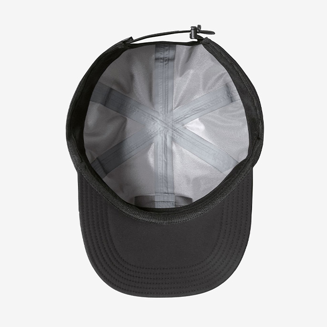 ツバの芯材にも軽量でやわらかな素材を使用し、コンパクトに携行することもできます。後部にフィット感を調整できるドローコードを装備。