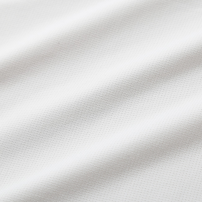 布用ライクで肌離れしやすいハリ感やドライな肌触りを持ちながら、ニット特有のストレッチ性を兼ね備えたコレクション。優れた速乾性とポリジン・ステイフレッシュ加工による抗菌防臭性を持ち、アクティブなシーンでも活躍する一枚。
