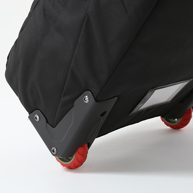 スムーズに持ち運べるように、本体の長さに合わせて取付位置を変更できるプルハンドルとローラーを備えています。