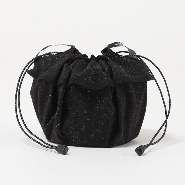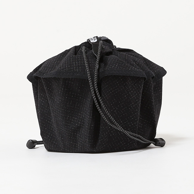 さまざまな形状のアイテムに柔軟にフィットし、すっきりミニマルに収納できる巾着型ポーチ