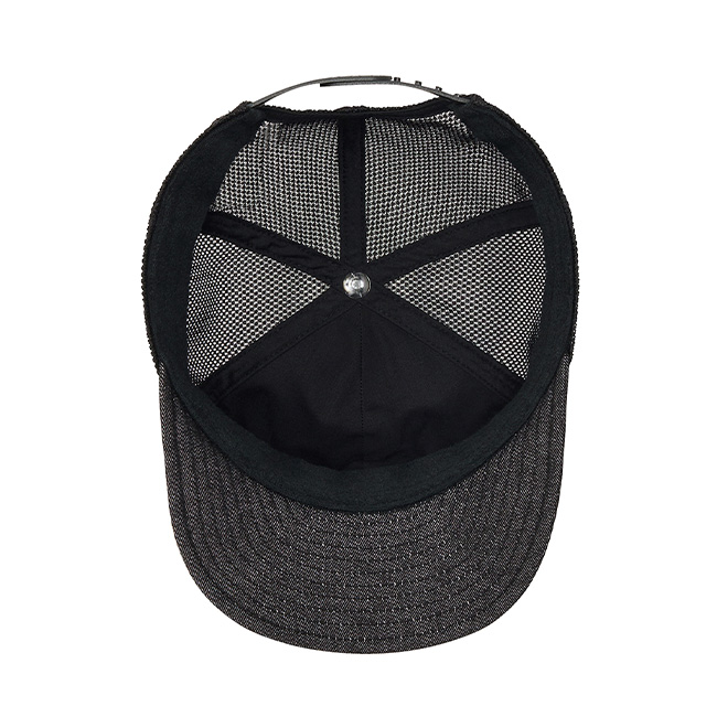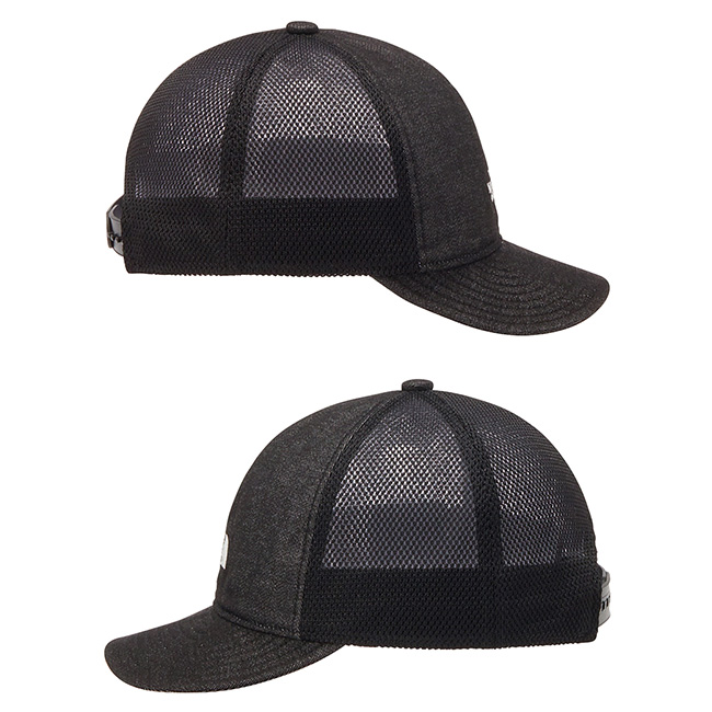 デニム調の本体とメッシュ素材を組み合わせた、軽やかで被りやすいデザインです。本体には綿65%・ポリエステル35%の混紡素材を使用し、やさしい被り心地を実現。