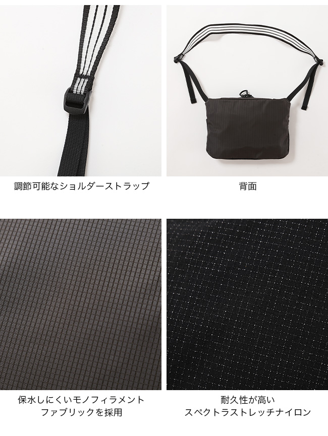 雨や汗で濡れても重くなりにくい、保水しにくいモノフィラメントファブリックを採用した高機能ショルダーバッグ。軽量設計で行動中の負担を軽減し、登山やスノーハイキングなどのアクティブシーンで快適に使用できます。