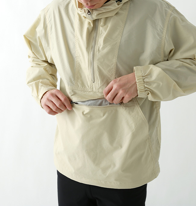 外出先での悪天候に対応できる撥水加工を施した、アノラックタイプのウインドブレイカー