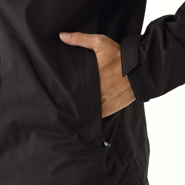 フロントは止水ファスナーを使用し、防水性に加え軽量性も重視。