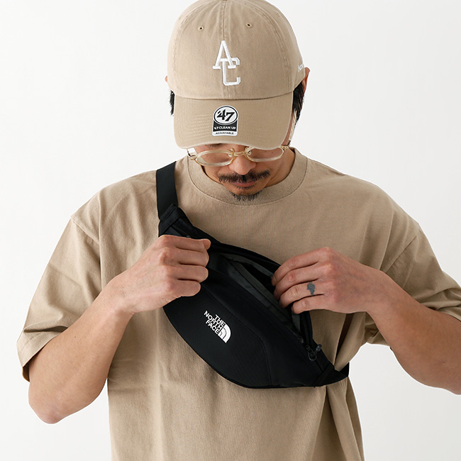 財布や携帯電話など、日常の身の回りの小物の収納に便利な1リッター容量のスリムなウエストバッグ