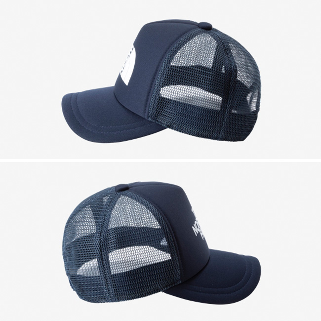 フロントに大きくロゴを配置した、スタンダードな形のメッシュキャップ。