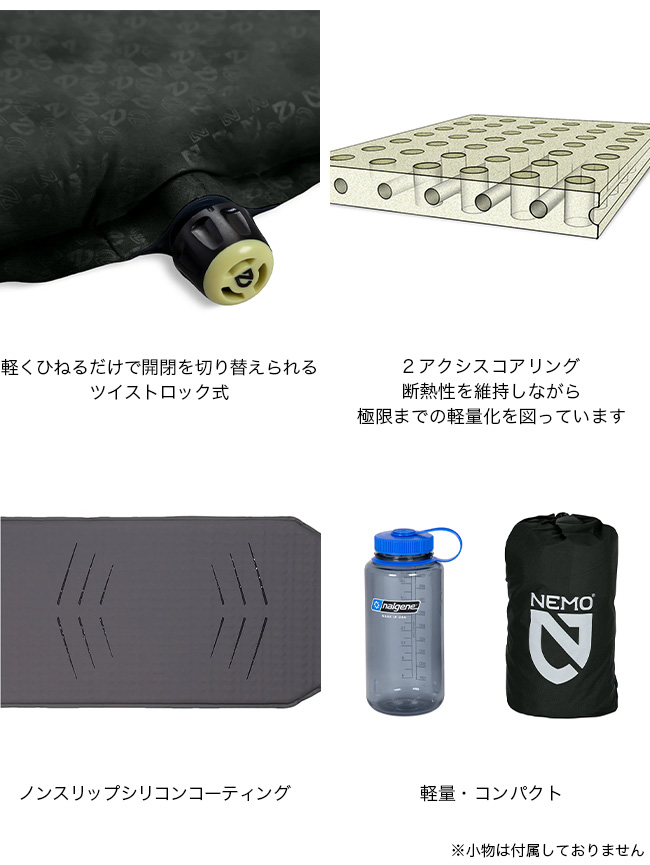 ■付属品:専用スタッフサック、コンプレッションストラップ、リペアパッチ