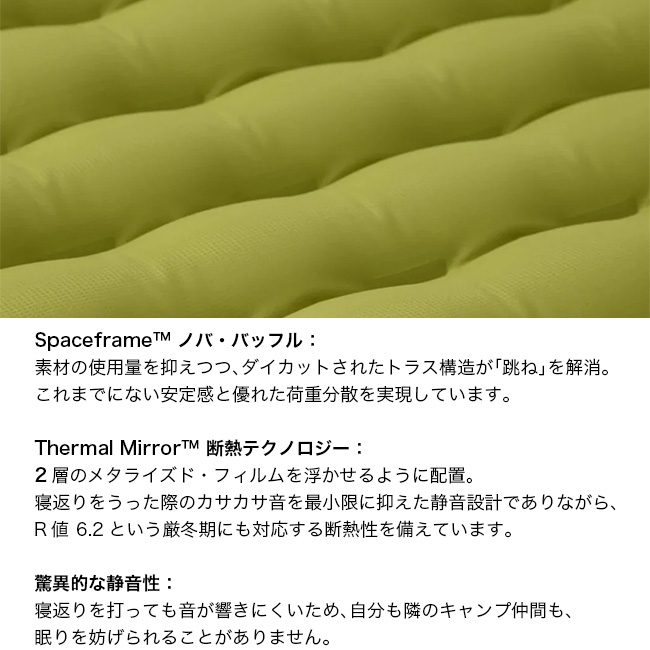 R値 6.2という驚異的な暖かさを、非常に静かな使い心地で提供し、季節や場所を問わずあなたを深い眠りへと誘います。