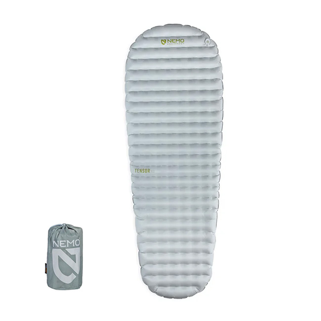 テンサー™ エリートはグラム単位の軽量化を追求するULハイカーのためにNEMOが提案するソリューションです。このモデルのために作られたカスタムメイドの10D CORDURA®ナイロンと1枚のサーマルミラー™断熱フィルムを使用し、レギュラーサイズで240gという驚異的な軽さとパックサイズを実現しました。
