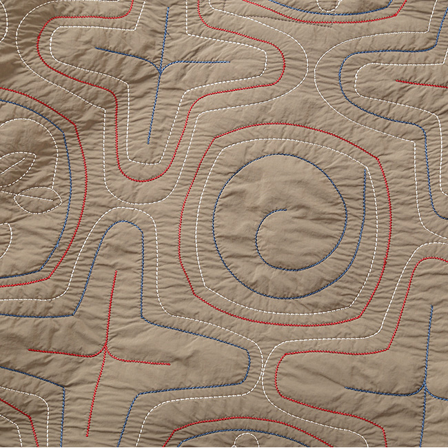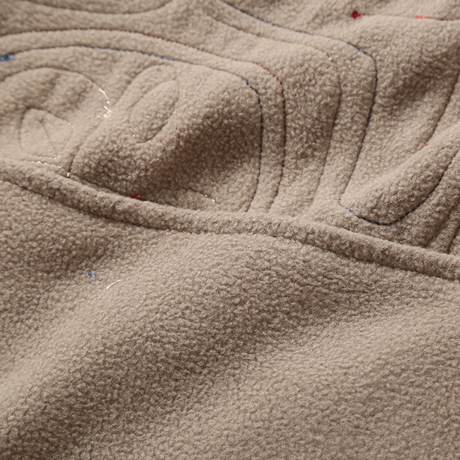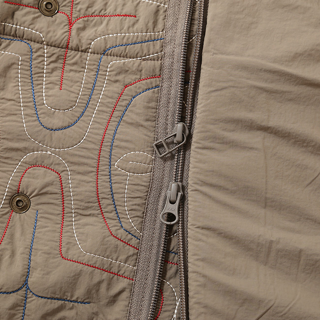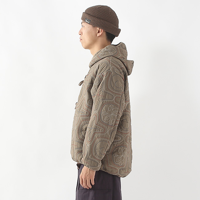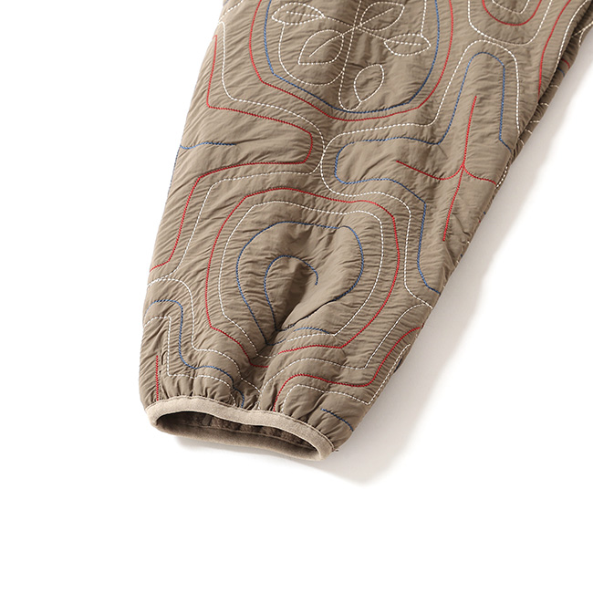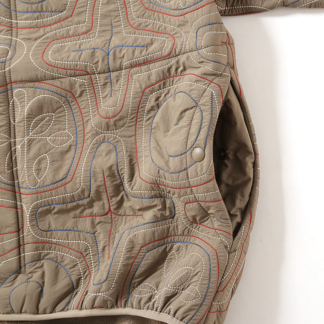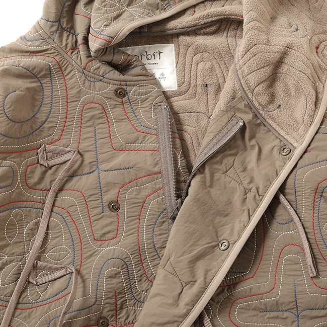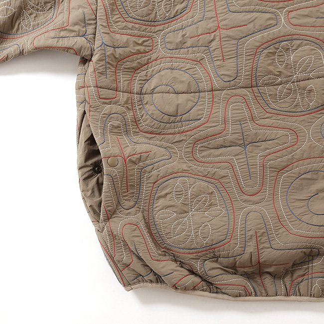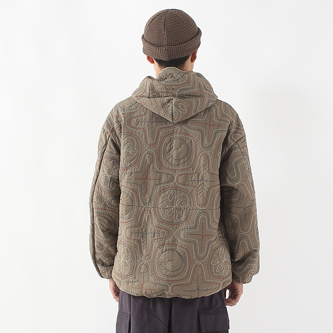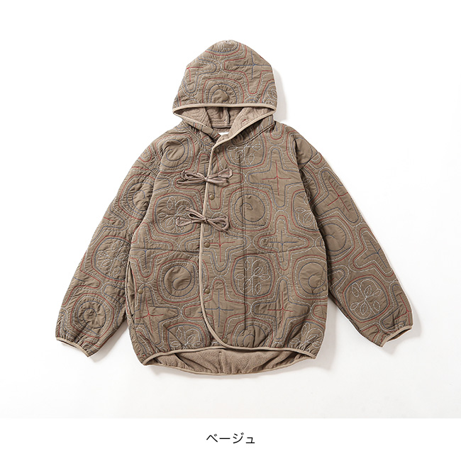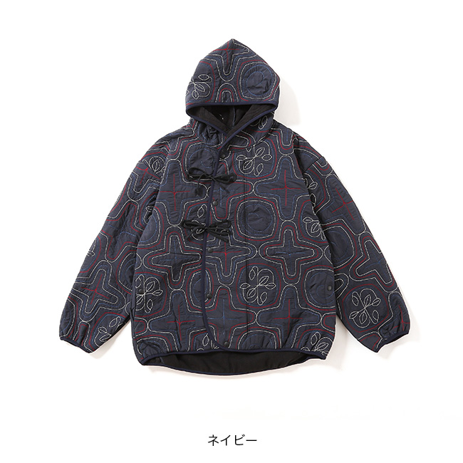 日本古来のアイヌ柄イメージのキルティングを施したフードジャケット。