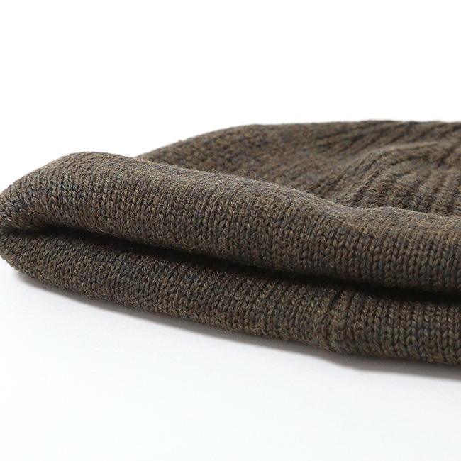 スーパー120原料の肌触りの良いビーニー。ざっくりとしたビーニーは街でも活躍します。