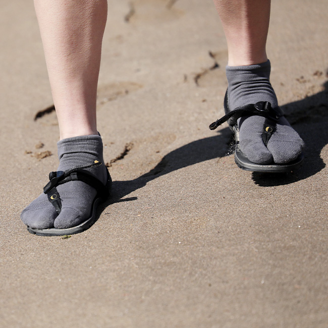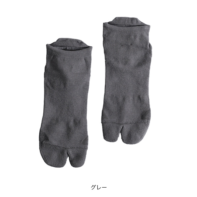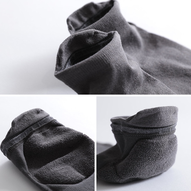 コットンにコーデュラナイロンを混紡した糸を使用しているので耐摩耗性に優れており履き口にはズレ落ちを防止するダウンストップ糸を使用し、ベロをつけていることでフィット感を高めています。つま先とかかとには左右非対称のパイル編みを施し、さらにつま先には、リンキングという技法を使い足先のごろつき感を無くしました。