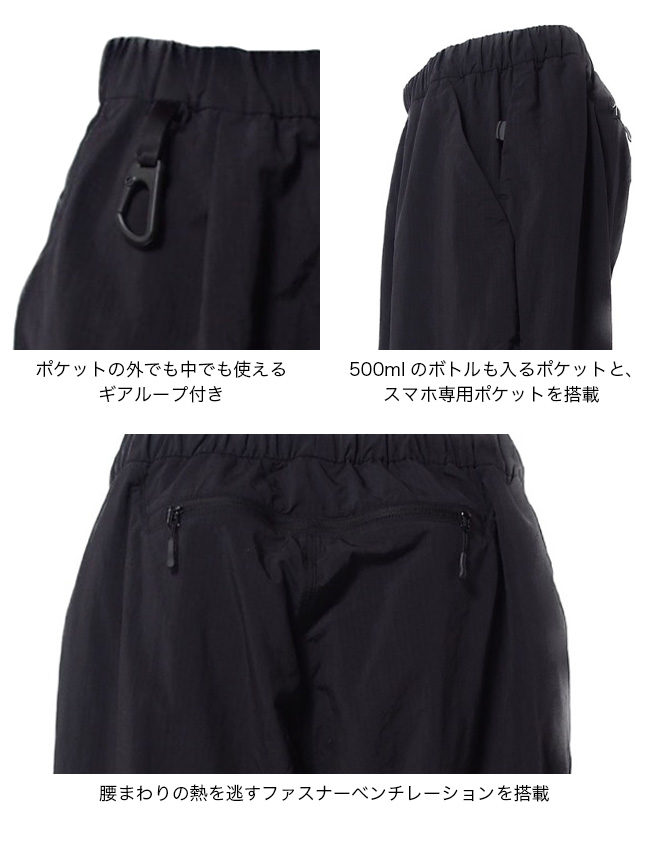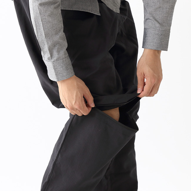 1. 365日/年の着用を想定2. ひざ下はファスナーで取り外し可能3. しゃがんでも落ちないスマホ専用ポケット4. ポケットの外でも中でも使えるギアループ5. 500mlのボトルも入るポケット6. 内ベルトは片手で引けるべルトコードアジャスター7. 腰まわりの熱を逃すファスナーべンチレーション素材には、リサイクルストローナイロン(空洞化したナイロン糸)を採用。