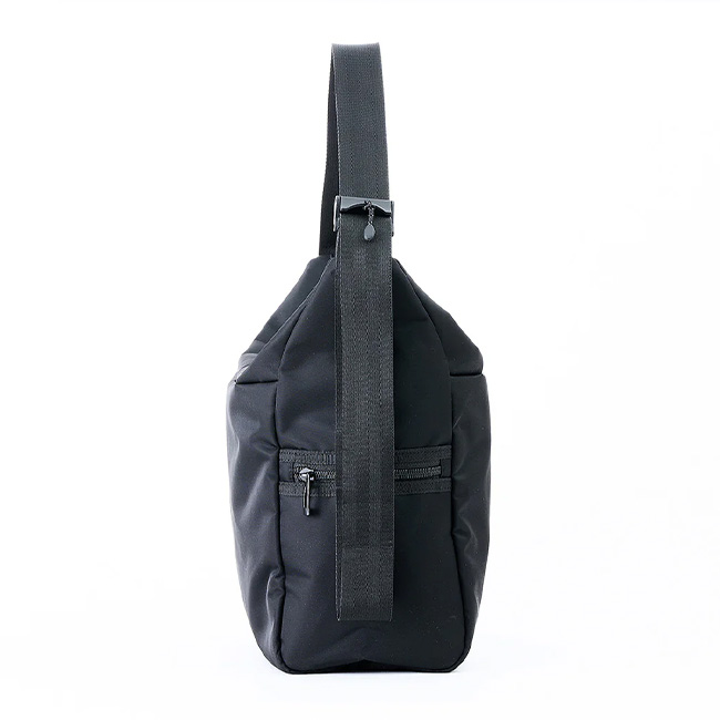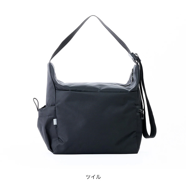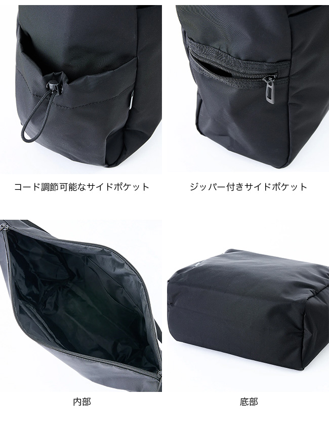 軽量でありながら引張強度と引裂強度に優れたナイロン素材を使用しているため、強度と耐久性があり、通常の平織生地と異なるツイル織りを採用しているため、適度な伸縮性も備えています。