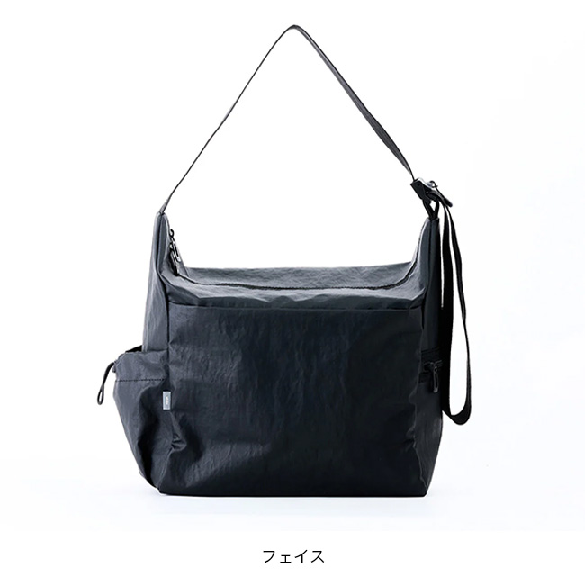 FACEは、ワッシャー加工を施したナイロンツイル生地にマットなカーボネート加工を施した生地を使用しています。