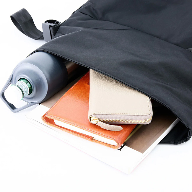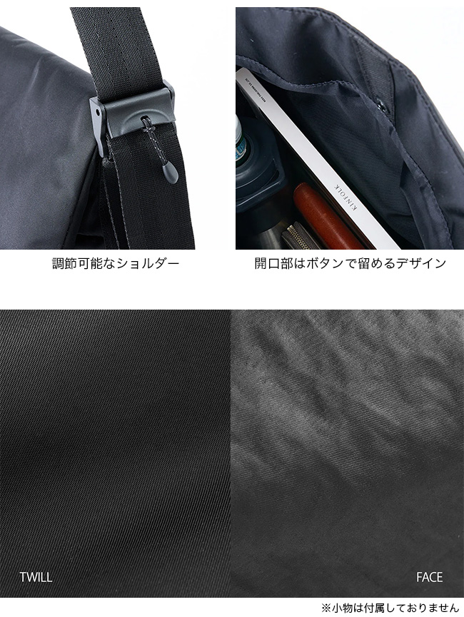 軽量でありながら引張強度と引裂強度に優れたナイロン素材を使用しているため、強度と耐久性があり、通常の平織生地と異なるツイル織りを採用しているため、適度な伸縮性も備えています。